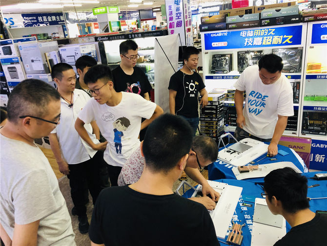 活动很简单,只要觉得自己是装机能手(其实任何人都可以),就来报名吧。比赛是通过对海兰G40一体机的拆卸-装机-机器点亮,以两人为一组,比拼的就是速度,最快完成的胜出。