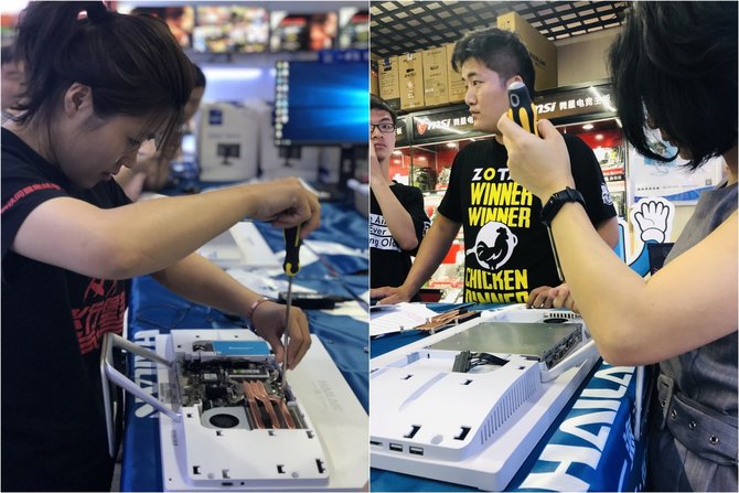 现在不少参与者和观众都发现海兰一体机是如此的轻松就能自行拆卸和安装主要的硬件,甚至能在后续可自行增加配置,如此更自由的玩法,可比笔记本等电脑更具优势。