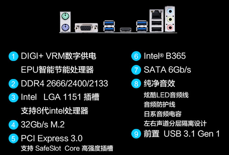 圣旗 B365M-D3H主板(Intel B365/LGA 1151) 支持7.8.9代处理器