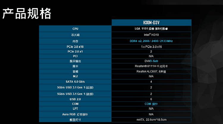 商品名称:华硕圣旗 H310M-D3V(Intel H310,,LGA 1151) 支持789代处理器