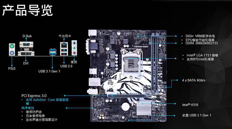 华硕圣旗 H310M-D3V(Intel H310,,LGA 1151) 支持789代处理器