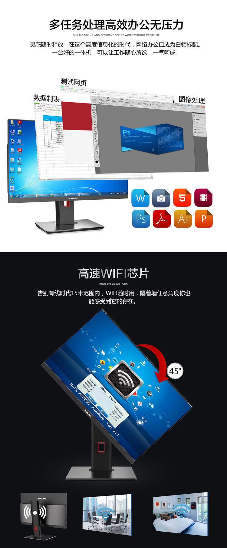 海兰一体机G40PRO/G70PRO可旋转升降 绘图游戏I3/I5/I7 23.8/27