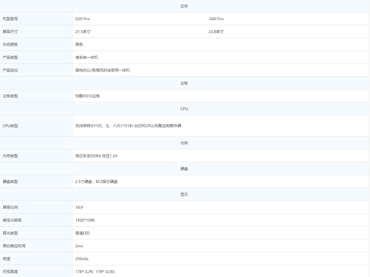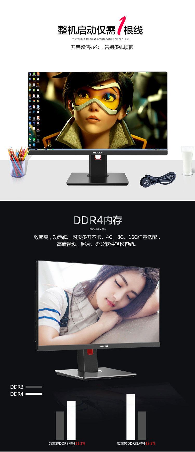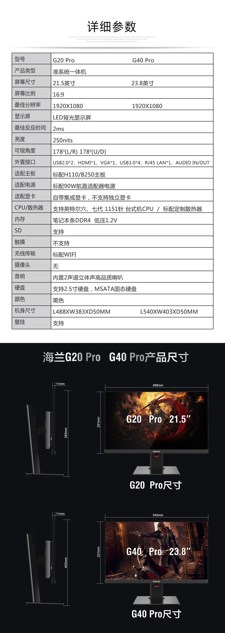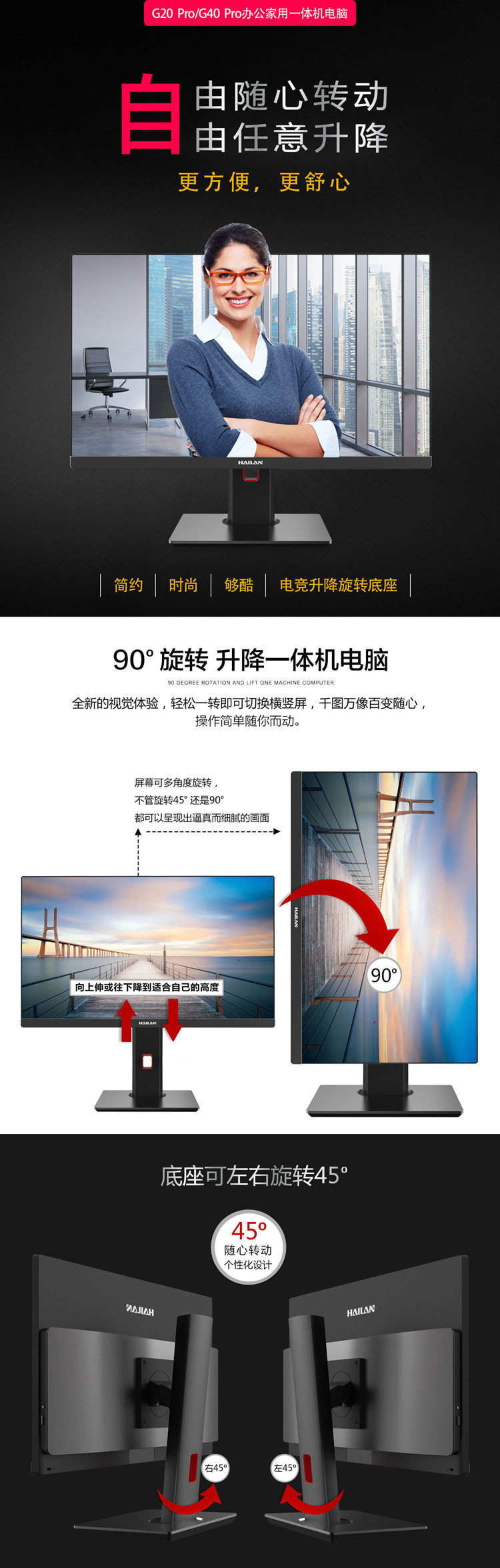 商品名称:海兰一体机G40PRO/G70PRO可旋转升降 绘图游戏I3/I5/I7 23.8/27
