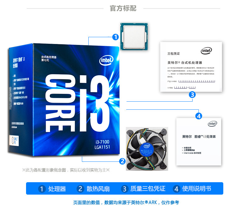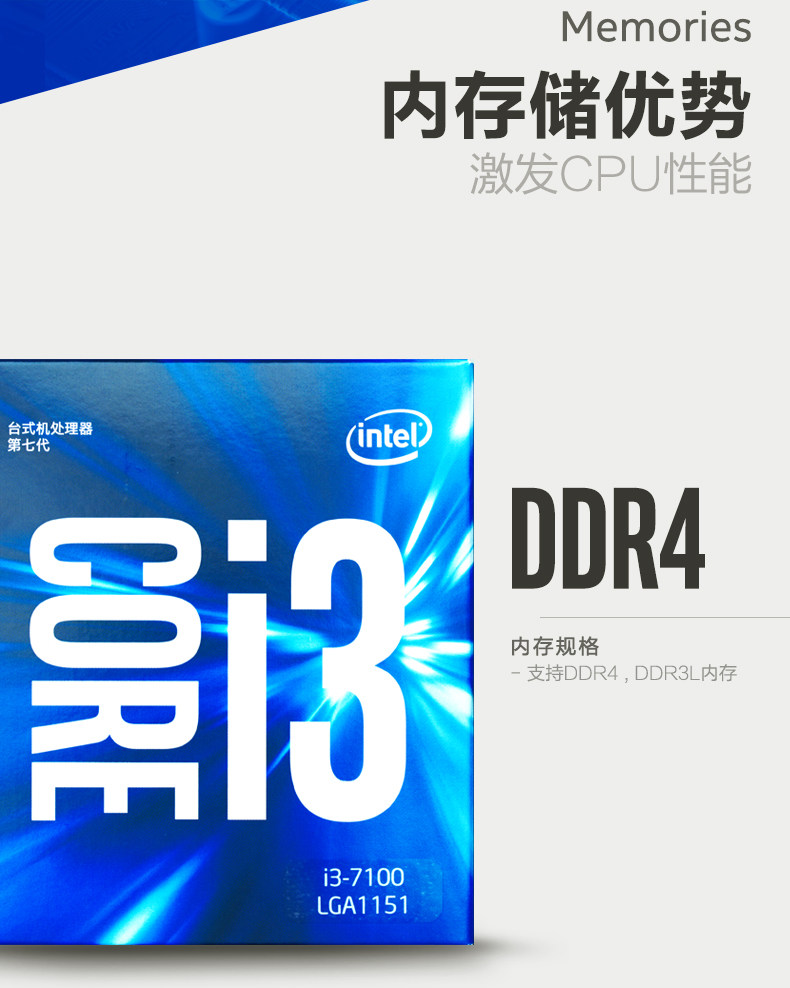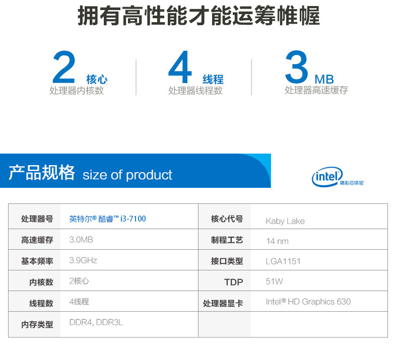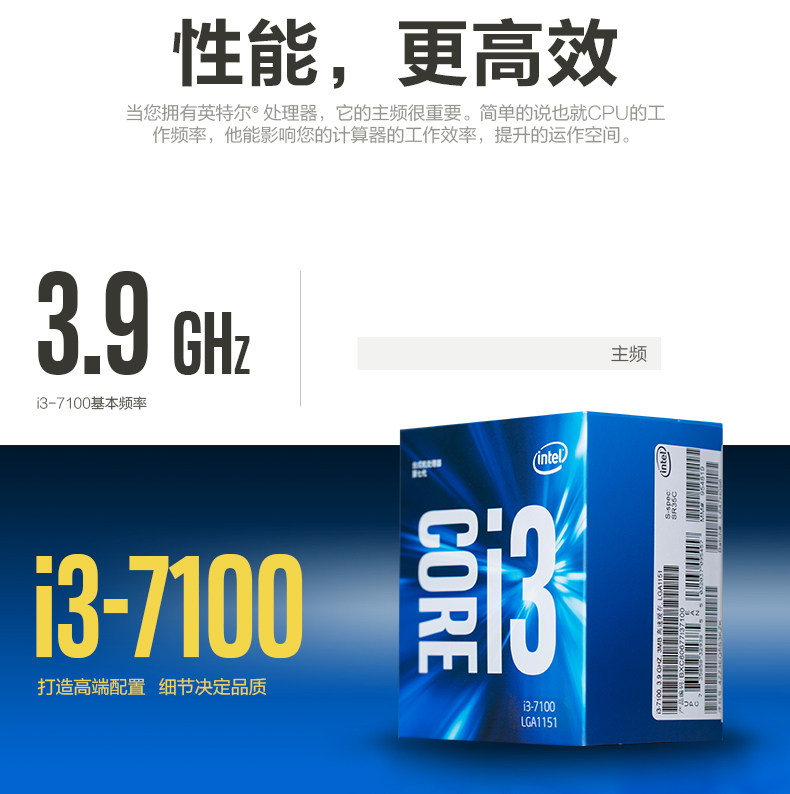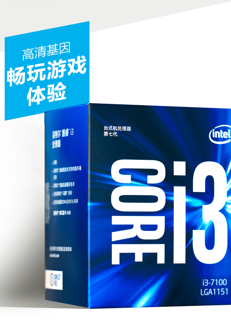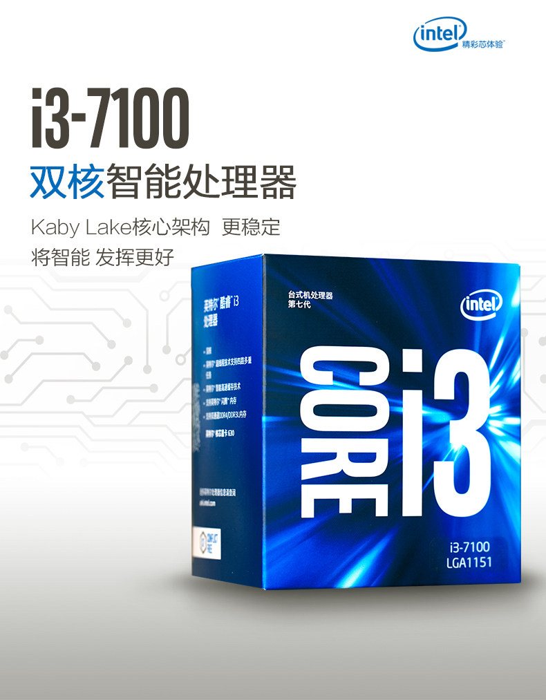 商品名称:i37100英特尔酷睿I3 7100盒装双核CPU第7代支持win7电脑处理器
