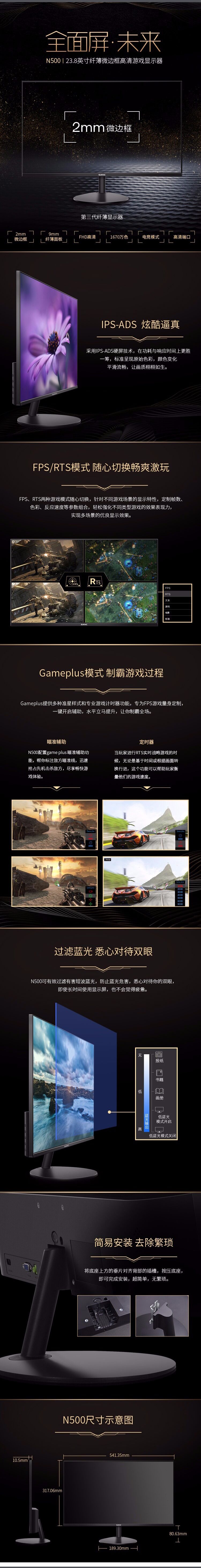 商品名称:SANC显示器N500 23.8英寸 HDMI/VGA 全面屏/微边框 超薄电脑液晶 家用/商务办公/影音高清 高清广视角 易拆装